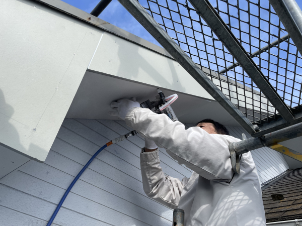 軒天部分は劣化が見られたため、ケイ酸カルシウム板の貼替を行いました。
