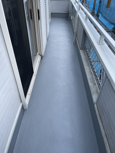 バルコニーは既存防水の劣化が見られたため、FRP防水にて再施工しました。